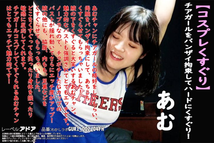 アキバブロードバンドビジョン で、タイトル名 【HD】【コスプレくすぐり】チアガールをバンザイ拘束してハードにくすぐり!あむ で検索してください。
