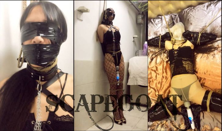 再び呼び出したセフレを緊縛→電マ固定→天井から首XX→激しいおしおき→両肘両膝をテープと縄で固定→電マで昇天