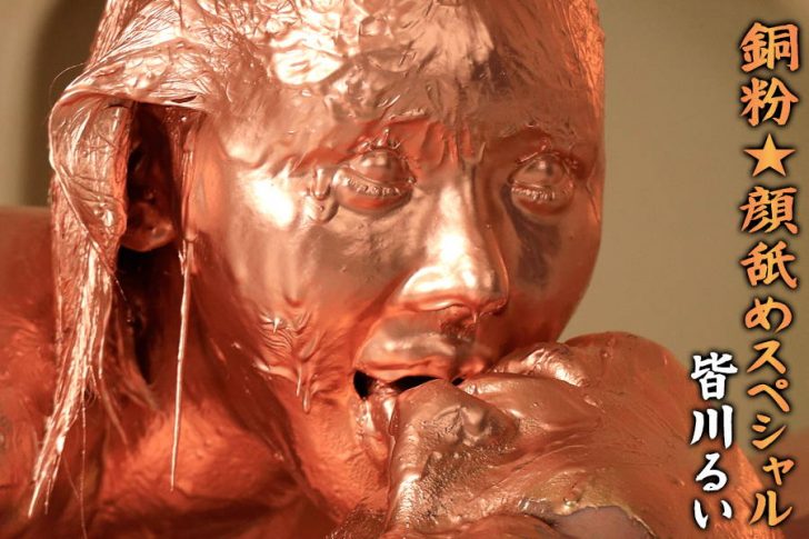ボテボテと銅粉を男の顔に垂らしながら、まるで美しき異星人のようにペロペロ舐めまくり!男の顔も銅粉に染まり、それを舐めるるい!メッシーの顔舐めプレイは初めてやりましたが、皆川るいが素晴らしすぎてとてもハマりました!!!